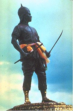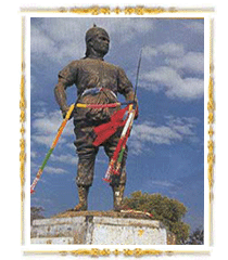 alla memoria di Phraya Pichai . L'immagine in bronzo del guerriero fiero davanti alla
