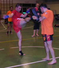 seguite poi da tecniche propedeutiche di gomito ginocchio per finire con calci e combinazioni varie.