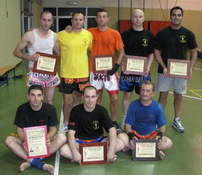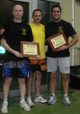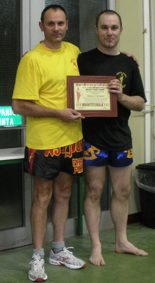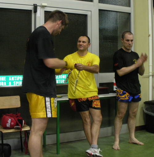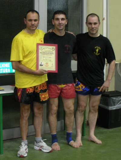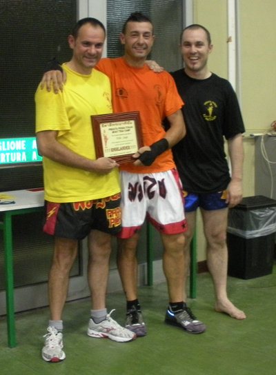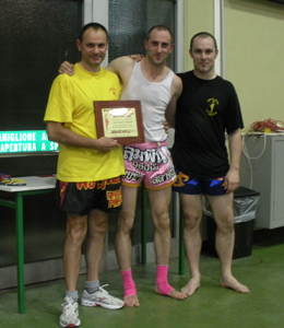 e le Targhe: > Un > Certificato di Allenatore a Parolini Luigi ringraziandolo per l'aiuto e disponibilità data negli ultimi anni in palestra > Al suo Primo allievo (20 anni di pratica nella thai boxe) ora Istruttore !!! INSOSTITUIBILE !!! Chiesa Cristiano > All'allievo più anziano su tutti gli aspetti (60 anni) co noltre 40 anni di esperienza nelle arti marziali !!! INTRAMONTABILE !!! Giancarlo Pescatori> Ai due Istruttori sempre in giro per gare e tornei con gli allievi, !!! INSTANCABILI !!! Antonio Scabrosetti e Paolo Baldassarre> All'allievo che negli ultimi 5 anni è mancato solo 3 volte in palestra tenendo sempre più unito il gruppo !!! IMMANCABILE !!! Daniele Castraberte> All'allievo praticante da oltre 10 anni (...testa matta) che dopo aver subito un incidente si è presentato agli allenamenti anche se non in condizioni di praticare !!! HIGHLANDER !!! Luigi Diliè